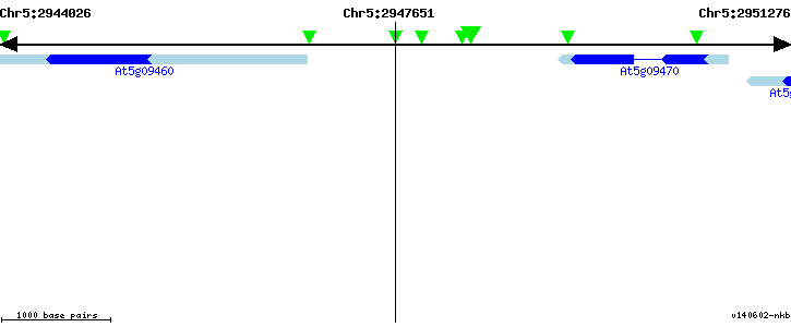 9 T-DNA insertion predictions/alleles that hit this region of BAC T5E8 are displayed.